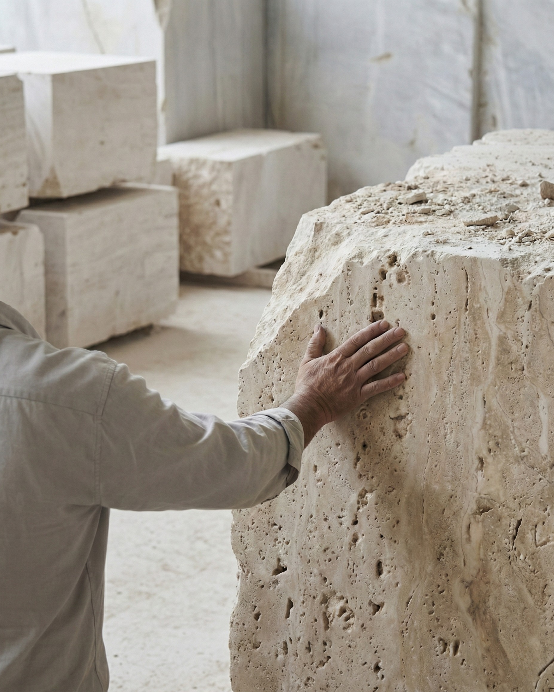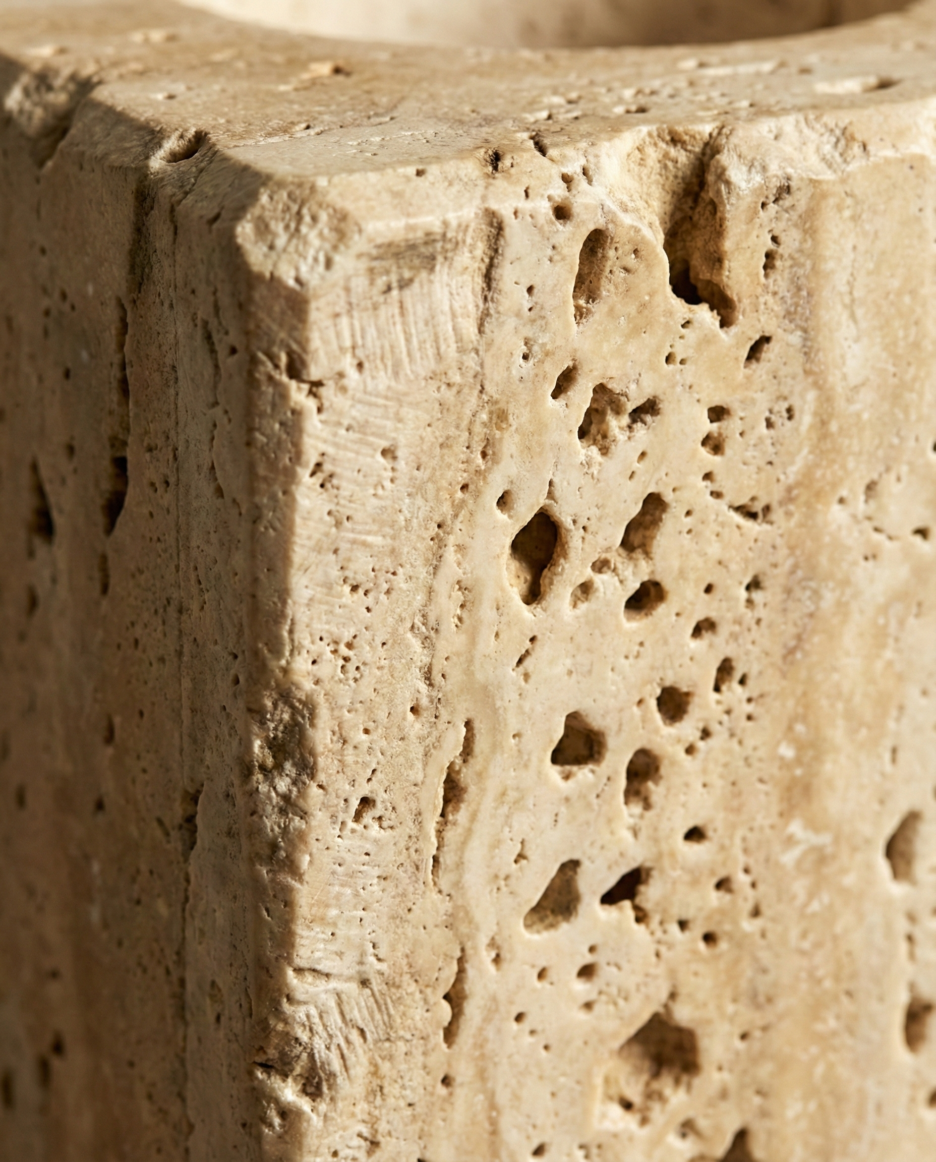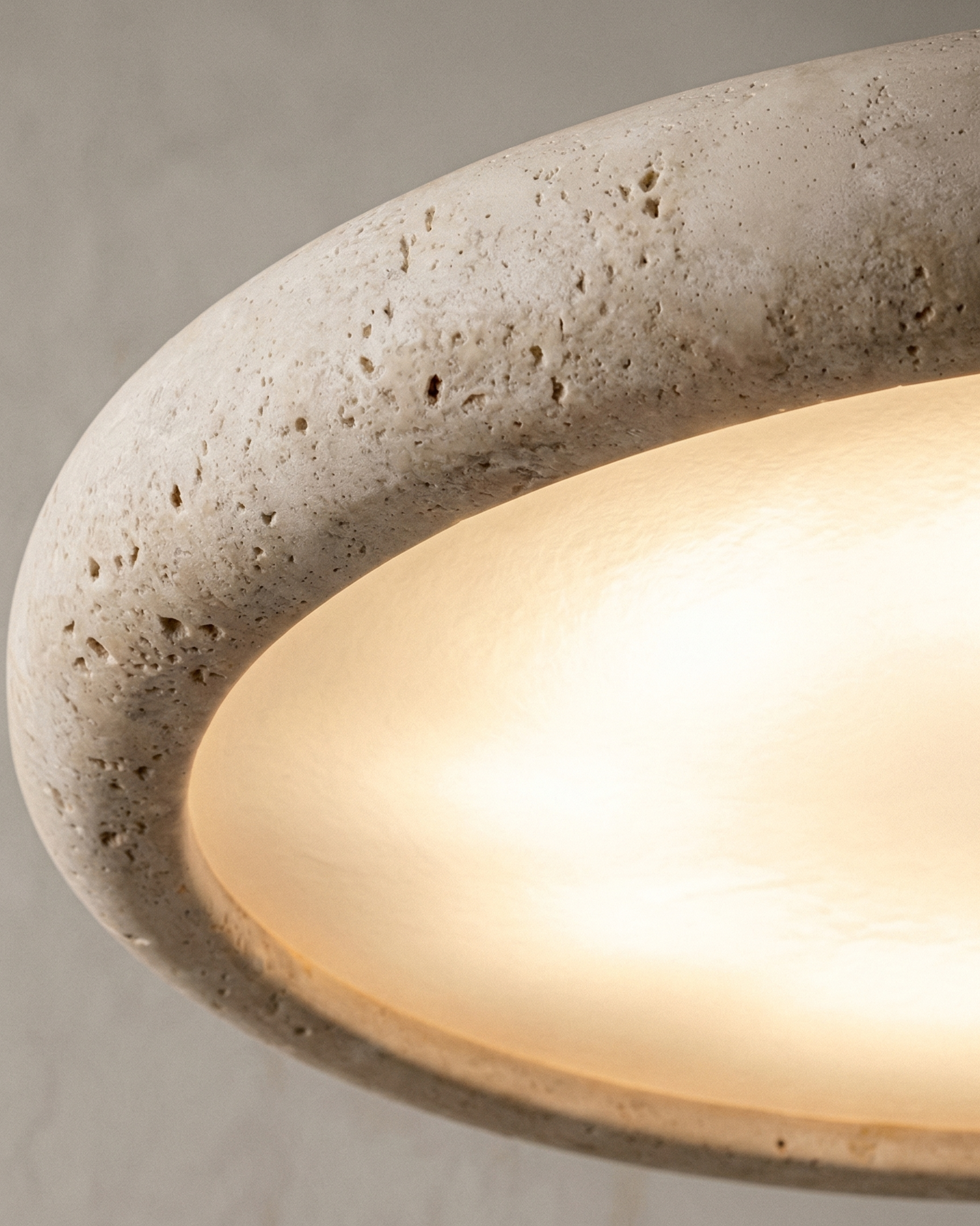 Le travertin ne vieillit pas — il se patine. Il ne décore pas — il transforme. Choisissez une lumière qui a du caractère, comme votre maison..